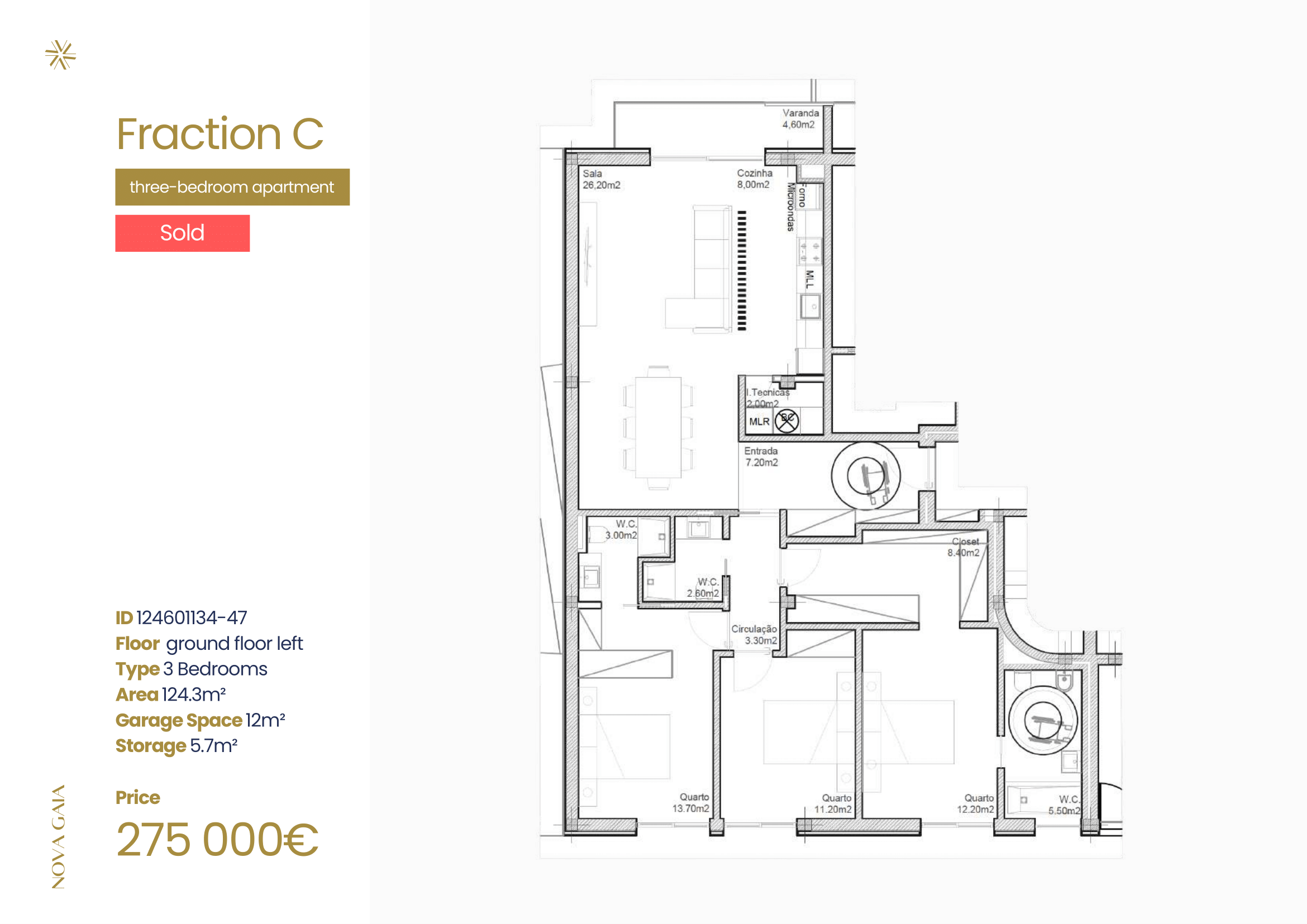 T1+1 / 2 bedrooms / Floor -1 Left / 83,6 m²